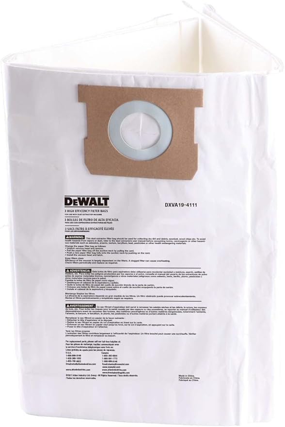 • 【What You Will Get】3 Pack DEWALT DXVA19-4111 fine dust bags, are sealed in tear-resistant packaging to prevent damage during transport or storage in humid workshops