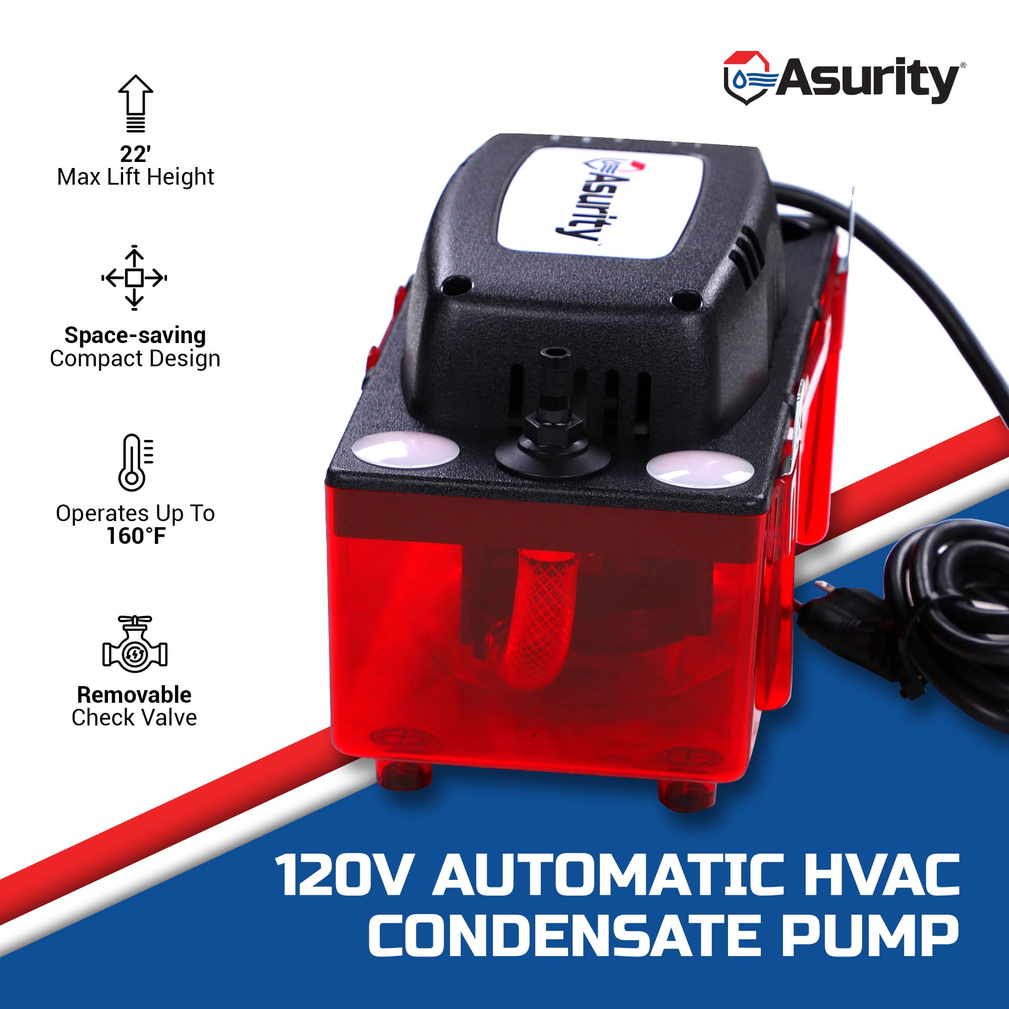 - Asurity by Diversitech ULTRACP-22 120V Compact HVAC Condensate Pump with 22′ Max Lift Height, Standard HVAC Condensate Removal Pump for Air Conditioners, Furnaces, or Dehumidifiers