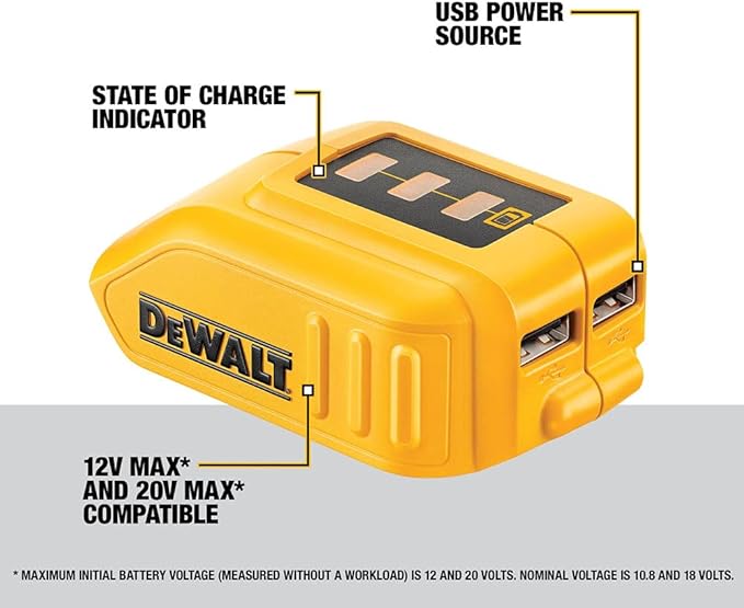 DEWALT 12V/20V MAX USB Charger with 2 Ports and State of Charge Indicator(DCB090)