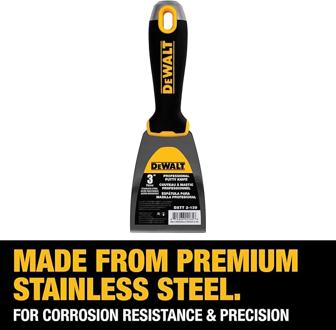 • GUARANTEED TOUGH – DEWALT stainless steel putty knives come with a lifetime limited warranty.