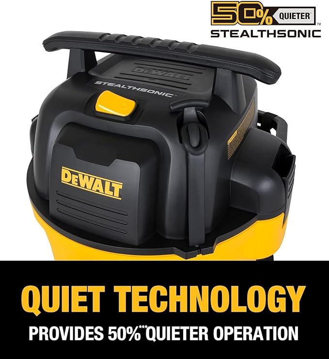 • 【New QUIET TECHNOLOGY】The DEWALT 9 Gallon. DXV09P-QTA Poly Shop Vacuum Wet/Dry has a powerful low-noise motor providing strong suction power and airflow to clean up the toughest wet and dry messes while being 50% quieter than the current model.