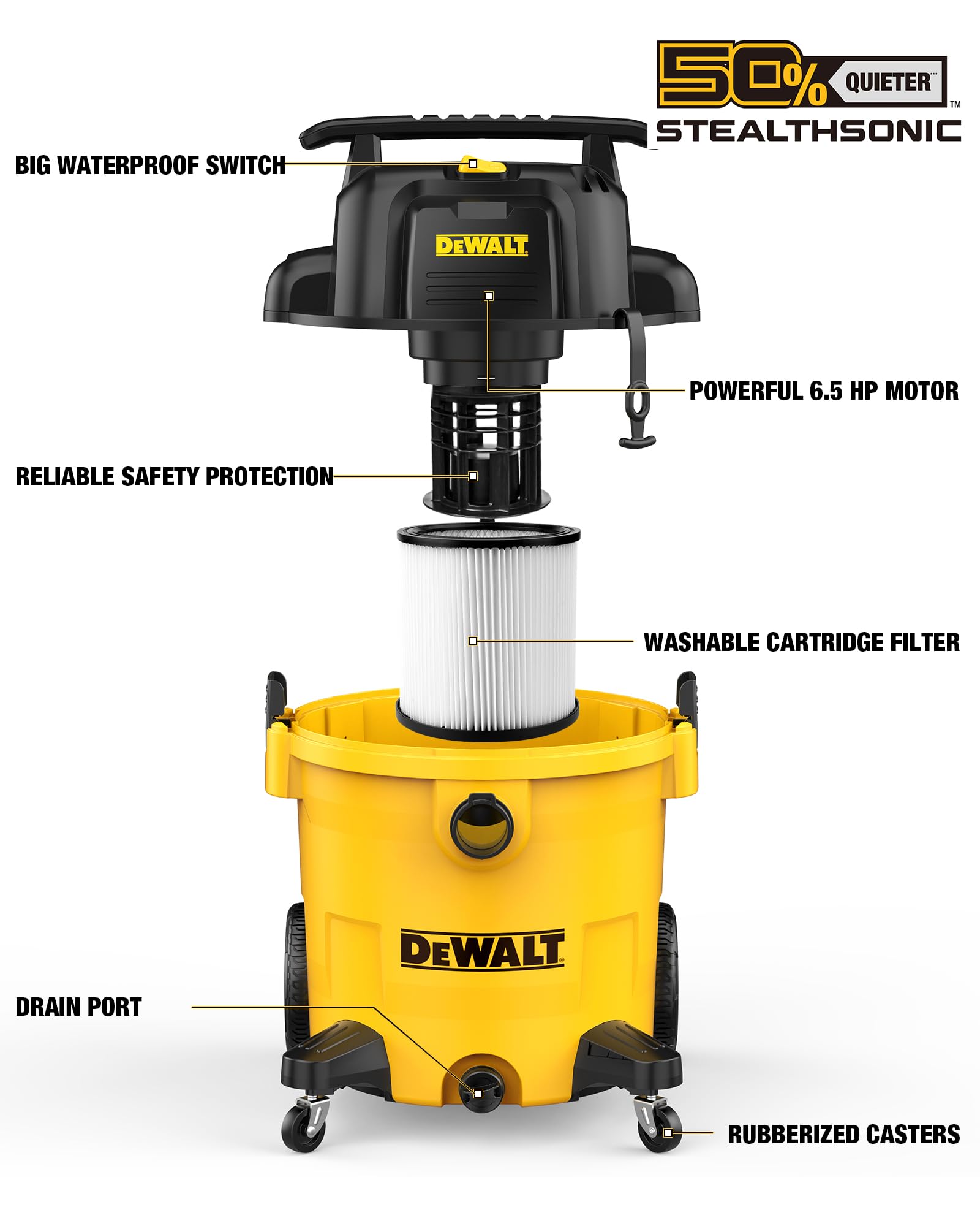- Dewalt high-performance DEWALT 9 Gallon STEALTHSONIC Ultra Quiet Poly Shop Vacuum Wet/Dry