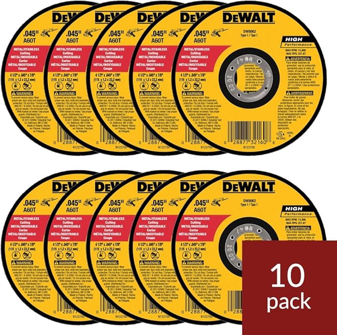 DeWalt DW8062 4-1/2″x.045″x7/8″ Metal Angle Grinder Thin Cutoff Wheel, 10 Pack