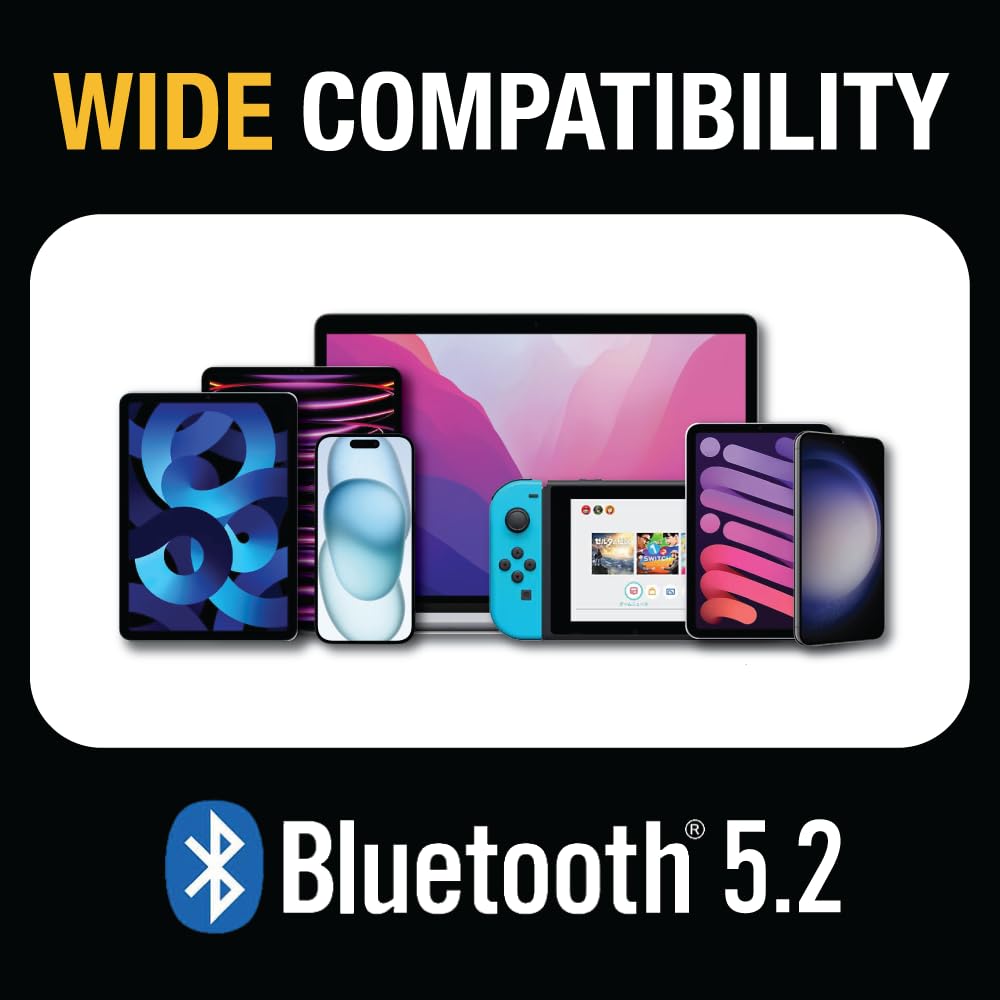 The DEWALT Heavy Duty Neckband Bluetooth Earbuds, Wireless Bluetooth 5.2 Headphones w/Microphone, Lightweight Comfort, IP56 Waterproof, Deep Bass Strong Beat, 20H Playtime, Jobsite Behind-Neck Earphones is built for the professional user, offering the durability and performance expected from DEWALT. As a key part of our work lights range, it provides reliable service and high efficiency for demanding jobsite tasks.