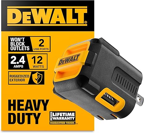 DEWALT Heavy Duty NeverBlock USB Charger, Angled Dual Port 12W Wall Charger Adapter, Foldable Plug, Charging Box Brick, Cube for iPhone 17 16 15 14 13 Pro Max, Galaxy S22 S21 Note 20, HTC, Moto, LG