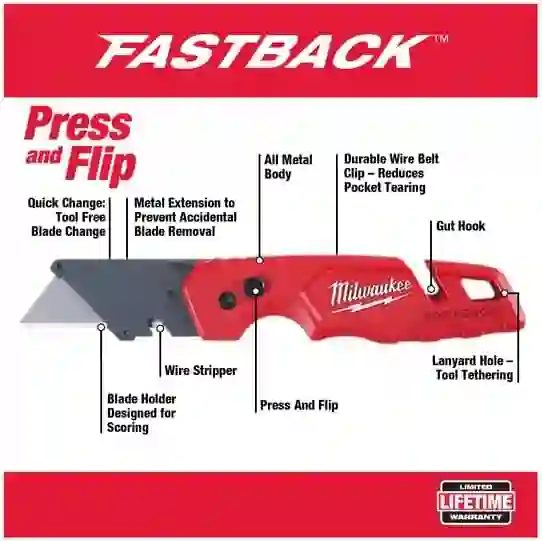Milwaukee 48-22-1901 Fastback Press and Flip Utility Knife with Belt Clip and Onboard Wire Stripping