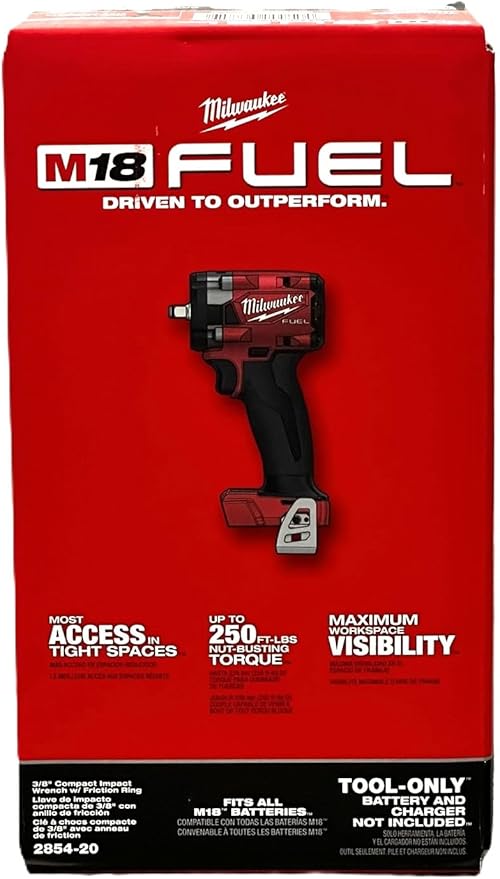 Milwaukee FUEL 2854-20 3/8 Brushless Cordless Impact Wrench Volt (Bare Tool Only), Red