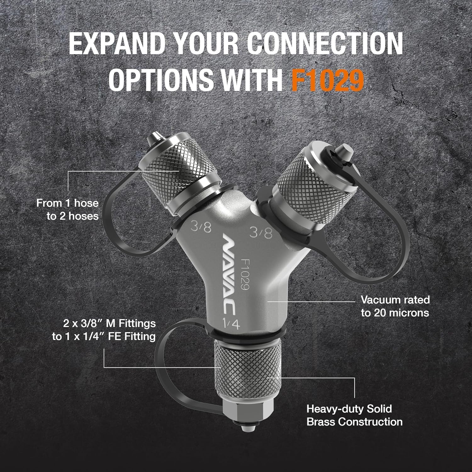 NAVAC F1029 Rapid-Y Connection Fitting for Faster Evacuation and Recovery – Solid Brass Y-shaped Adapter – Large Internal Diameter – 2-way Hose Splitter for HVAC – 2 x 3/8″ to 1 x 1/4″ is designed for efficient HVAC service and dependable hose performance. It is made to support reliable refrigerant transfer and reduce service delays. The rugged build supports daily field use where leak resistance and durability matter.