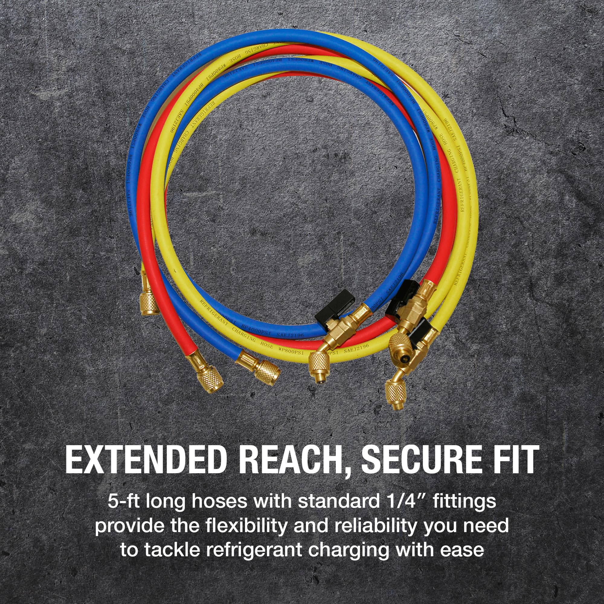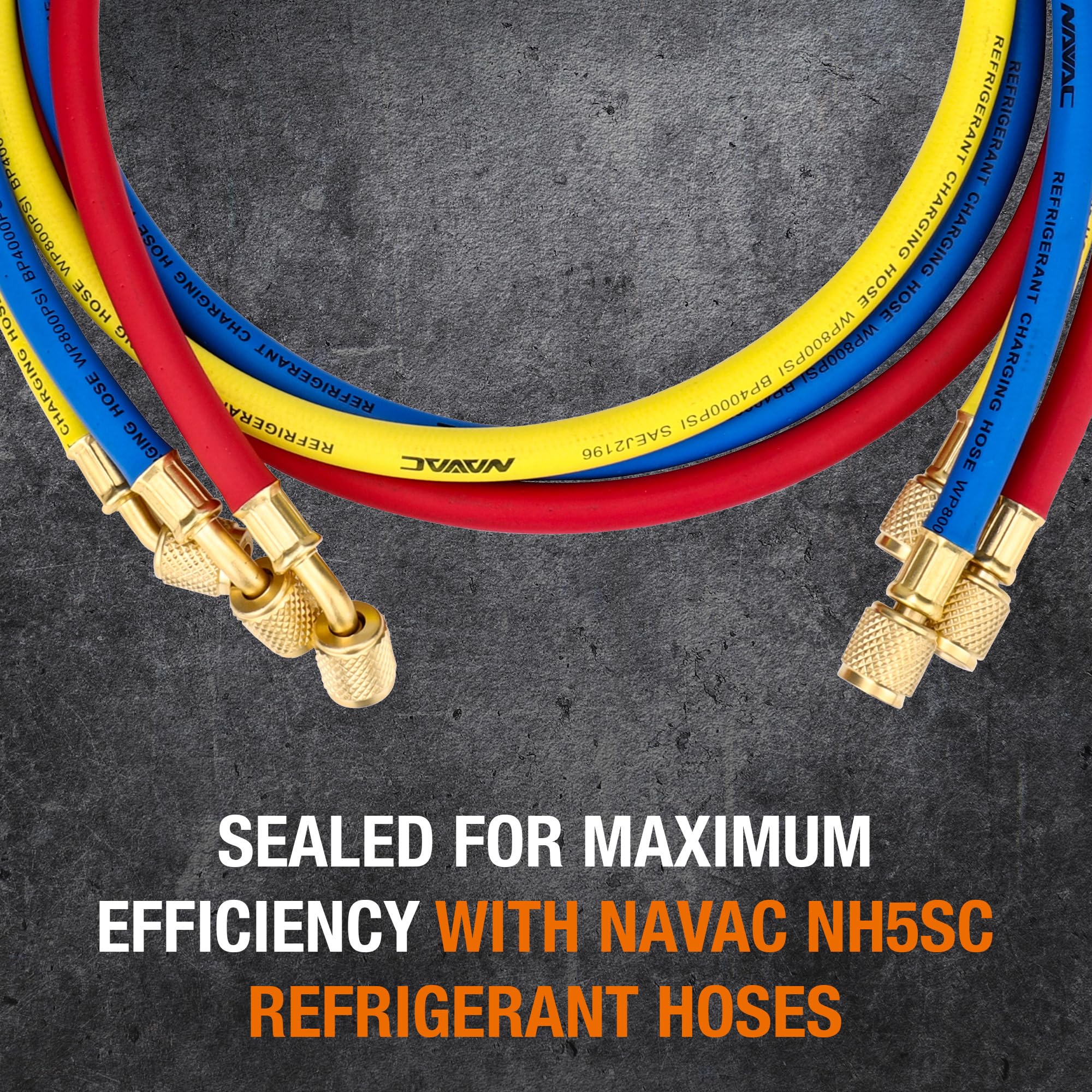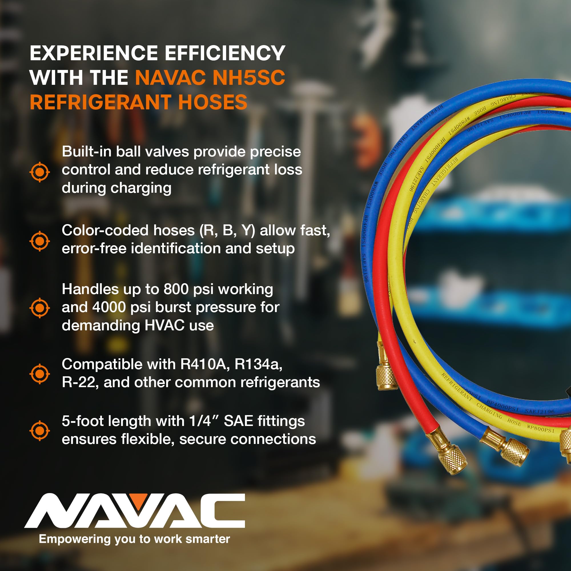 • High-quality NAVAC NH5SC Refrigerant Hoses | 1/4″ HVAC Charging Hoses with Ball Valve | Suitable for R410A, R134a, R