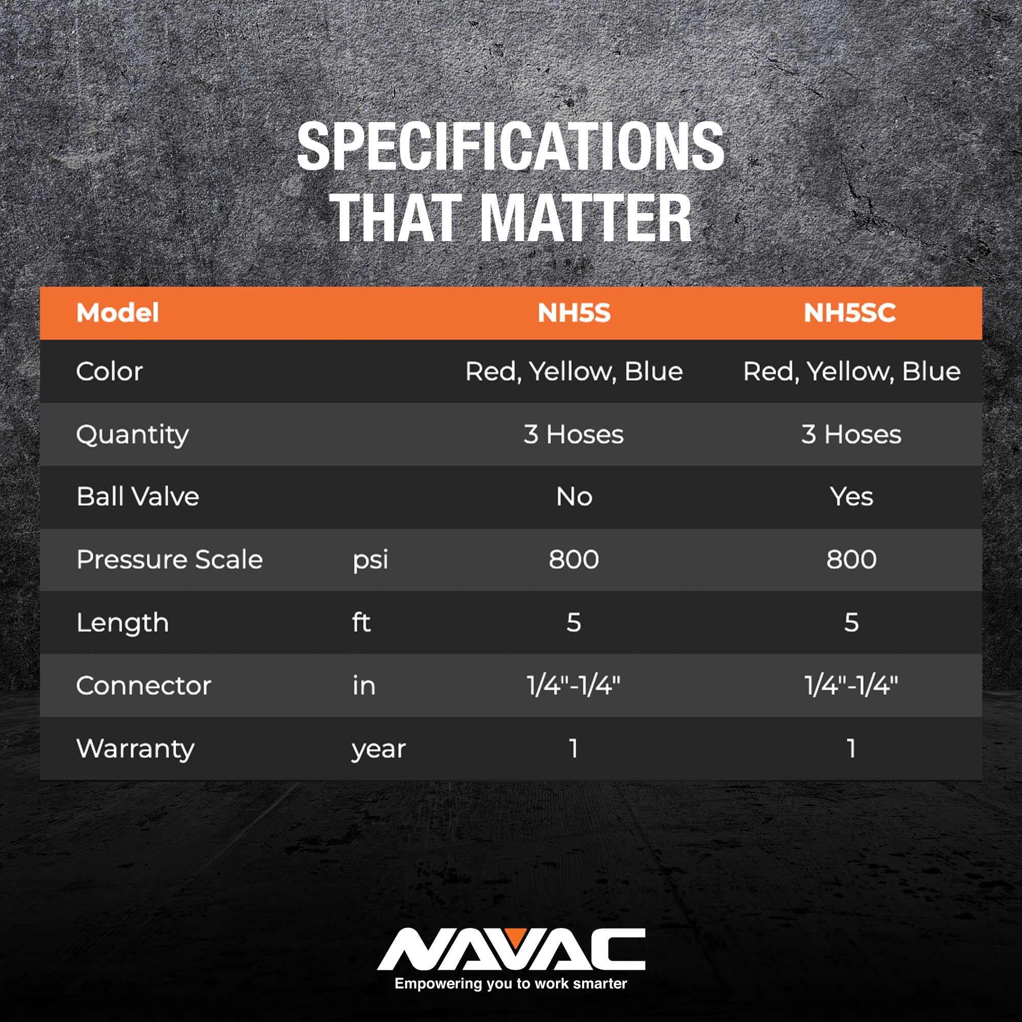 NAVAC NH5SC Refrigerant Hoses | 1/4″ HVAC Charging Hoses with Ball Valve | Suitable for R410A, R134a, R-22 and Other Refrigerants | 5 Feet Long | 3-Color Hose Kit | 1 Year Warranty is designed for efficient HVAC service and dependable hose performance. It is made to support reliable refrigerant transfer and reduce service delays. The rugged build supports daily field use where leak resistance and durability matter.