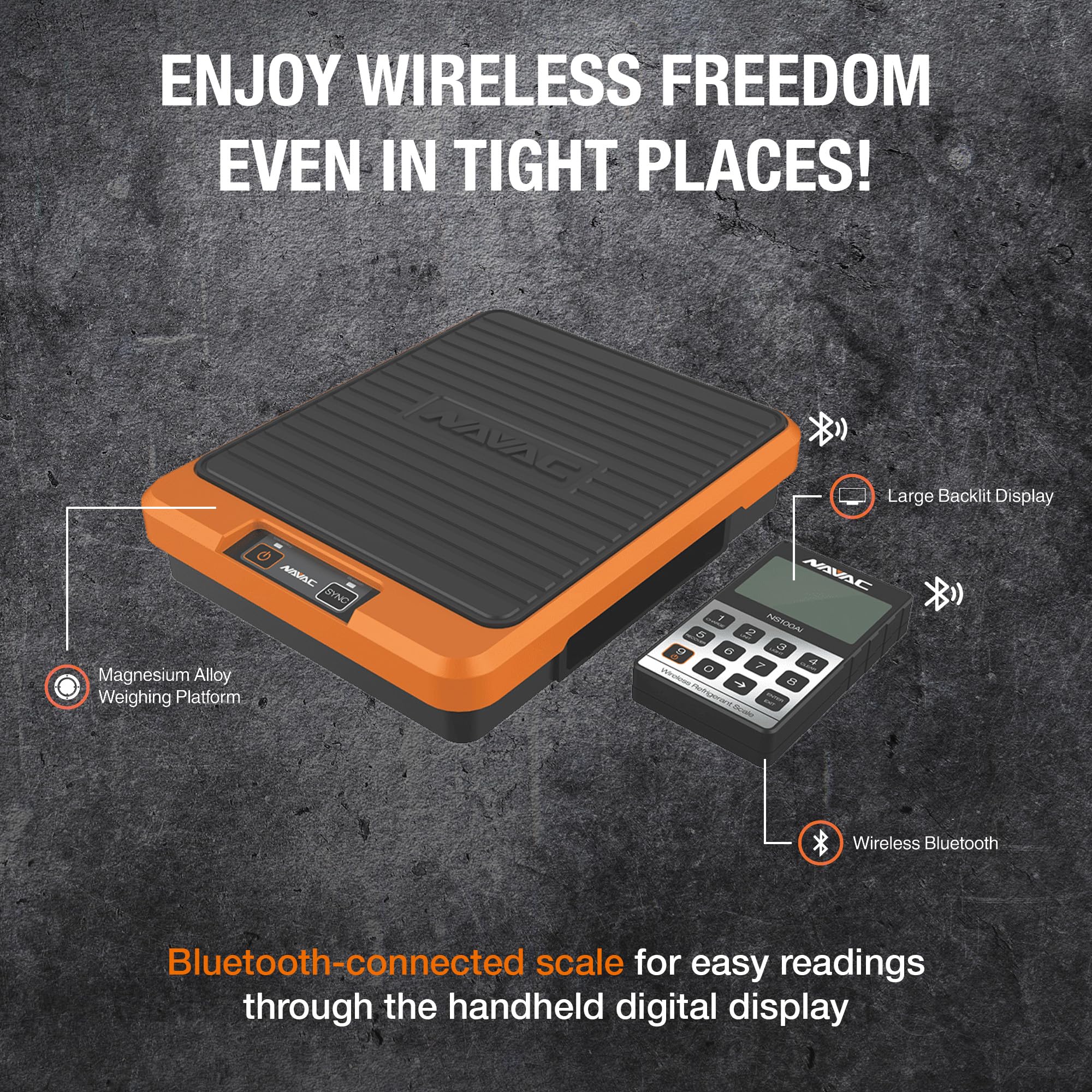 - High-quality NAVAC NRS2i01 Wireless Refrigerant Scale | Bluetooth Handheld Display | 220 lbs Capacity | Lightweight Magnesium Alloy Weighing Pan | Precise Measurements | 1 Year Warranty