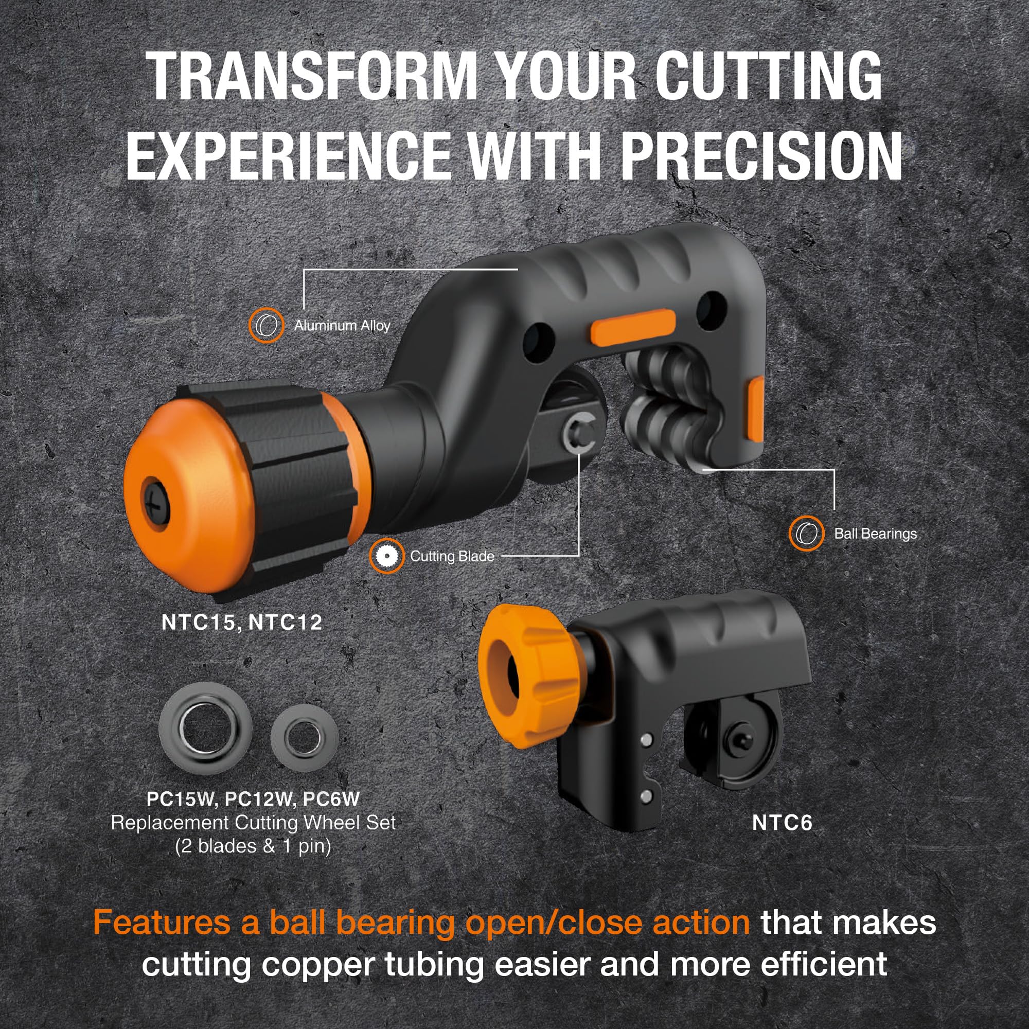 NAVAC NTC12 Tube Cutter | 1/8″ to 1-1/4″ Outside Diameter | 2 Sharp Cutting Blades | Ball Bearing Feature | Aluminum Alloy Copper Tube Cutter | 1 Year Warranty