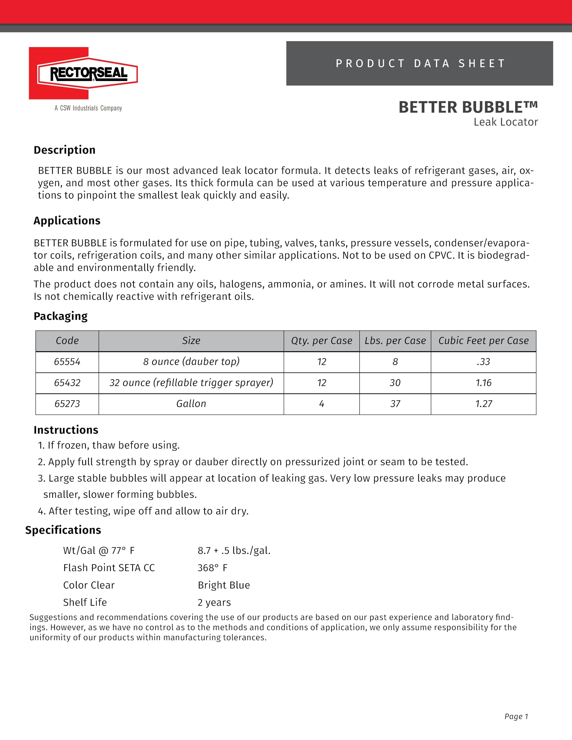 - RectorSeal Better Bubble 65432 Leak Detector, Fast Acting, Plumbing, 32 oz.