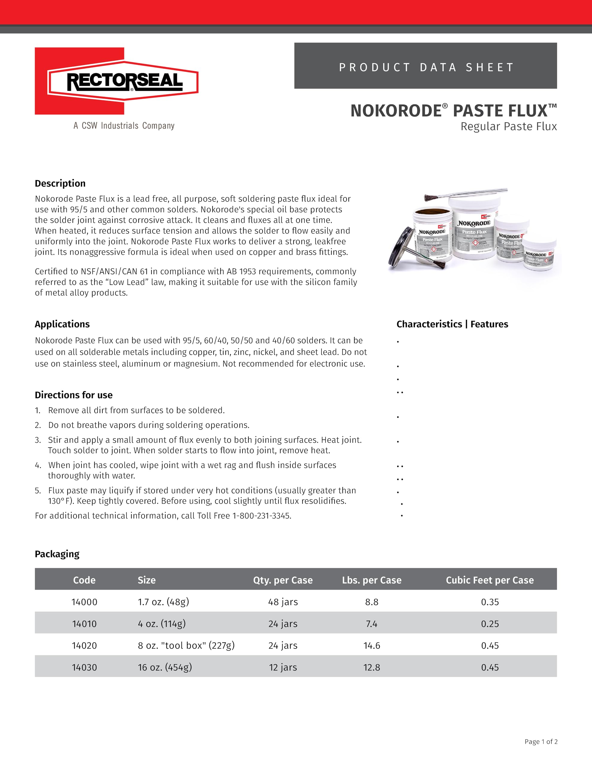 - RectorSeal Nokorode 14000 Paste Flux, Cleans and Fluxes, Plumbing, 1.7 oz.