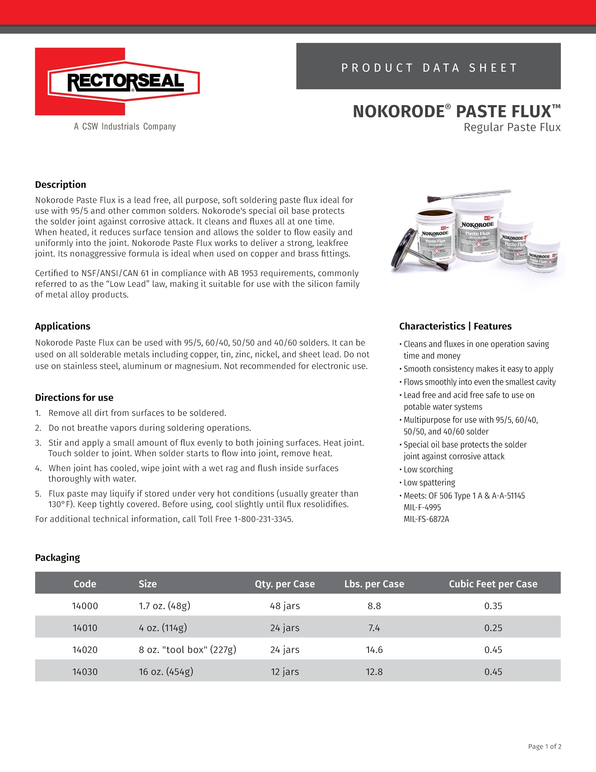 - RectorSeal Nokorode 14010 Regular Paste Flux, Cleans and Fluxes, Plumbing, 4 oz