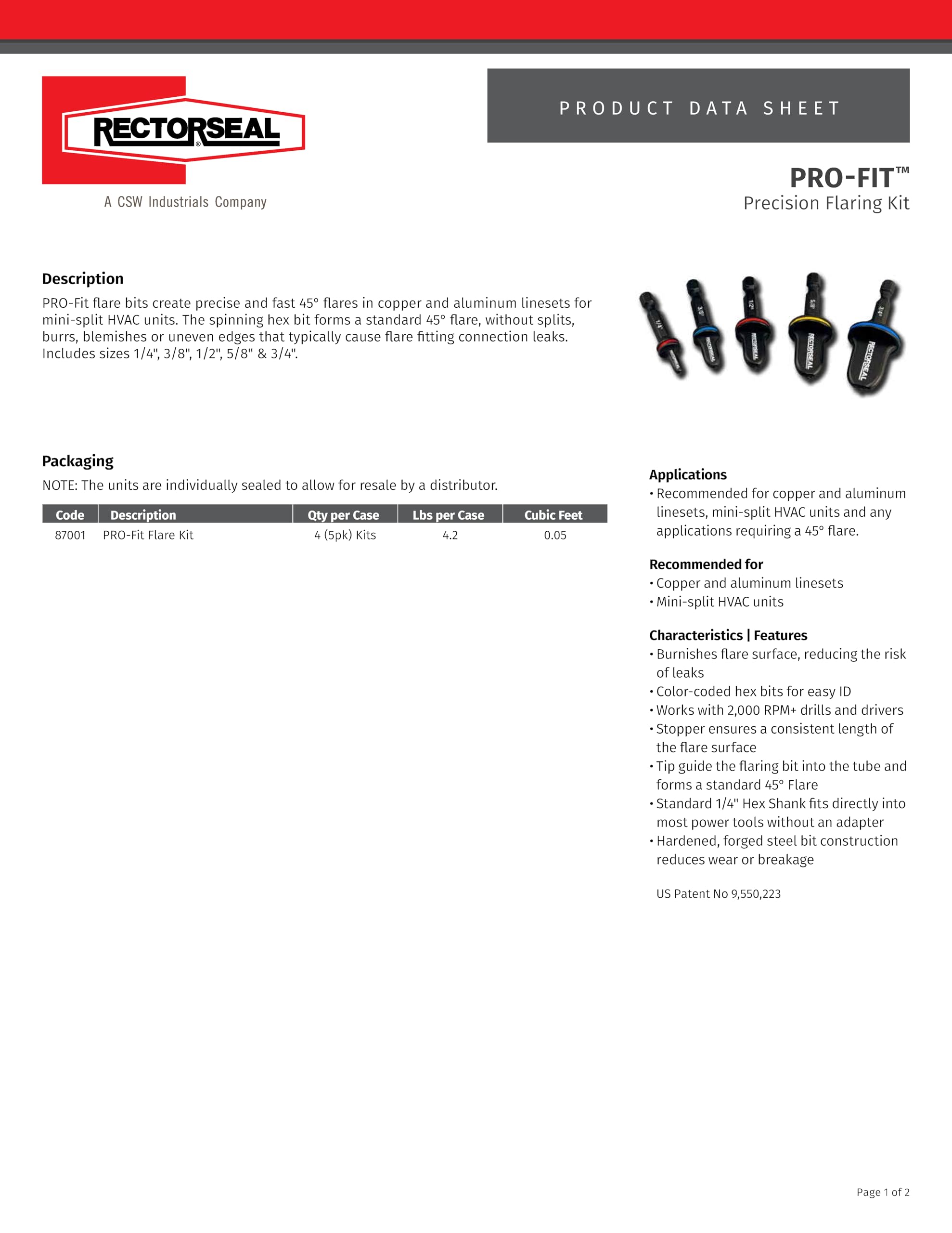 - RectorSeal Pro-Fit 87001 Precision Quick Flaring Kit, with 5 Color Coded Bits for Quick & Easy Sizing Identification 1/4″ Through 3/4″, Creates Leak Free Flares in Seconds, HVAC