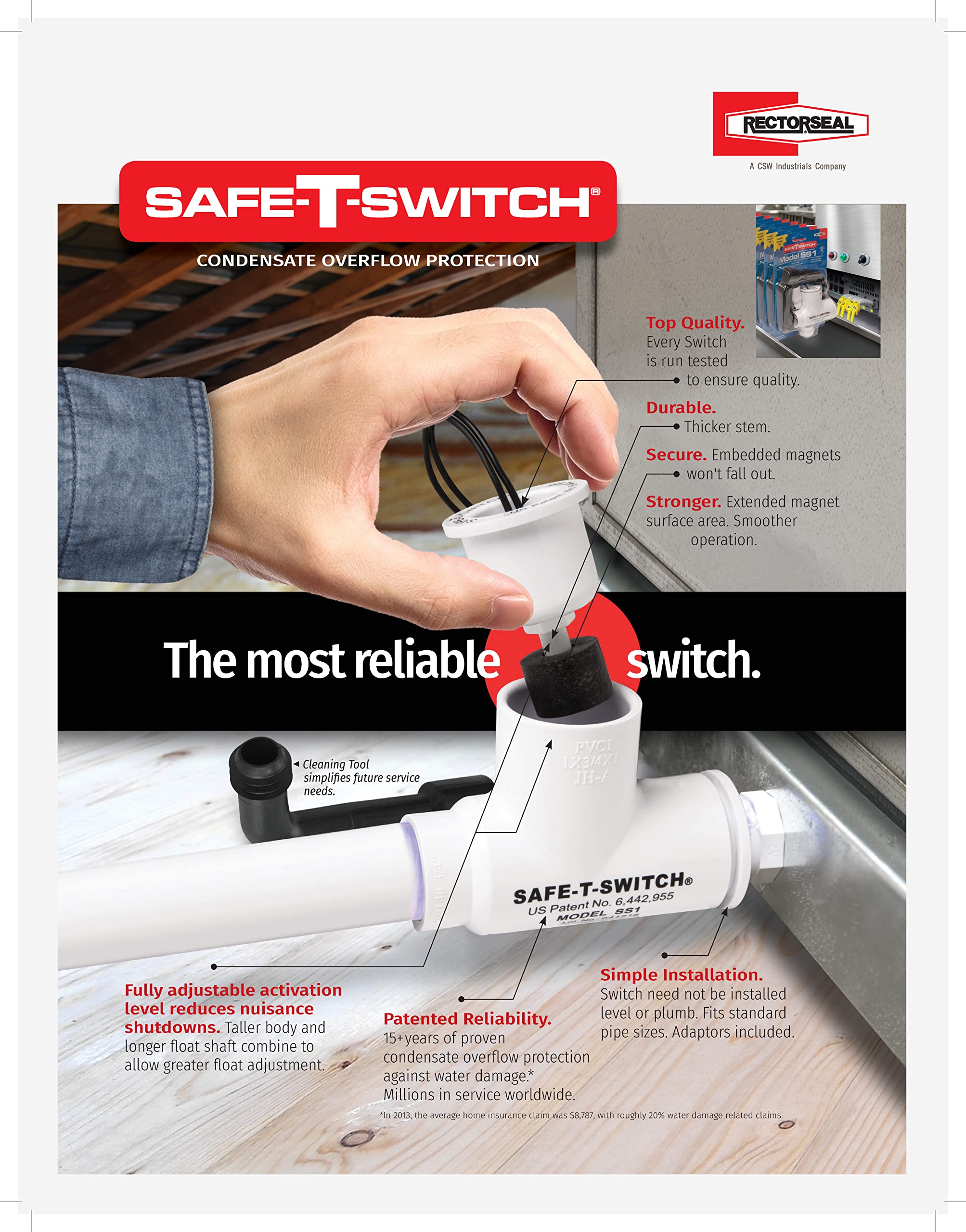 - RectorSeal Safe-T-Switch 97647 Condensate Overflow Switch, Slim Design, HVAC