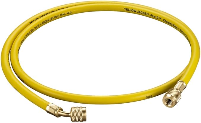 Yellow Jacket 30260 PLUS II 1/4″ Hose for Left-Handed A2L Refrigerant Tanks – 60″ Length With 1/4″ LH to RH Angled Fitting