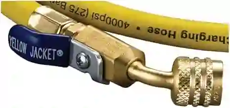 Yellow Jacket 30460 – A2L Hose for Left-Handed A2L Refrigerant Tank (Yellow PLUS II Hose, 60′ ‘ LH to ‘ RH, 45 Fitting with Ball Valve)