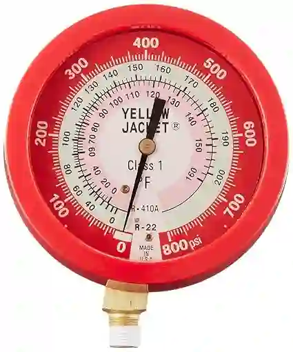 Yellow Jacket 49515 3-1/2″ Liquid-Filled Gauge (Degrees F) Red Pressure, 0-800 psi, R-22/410A