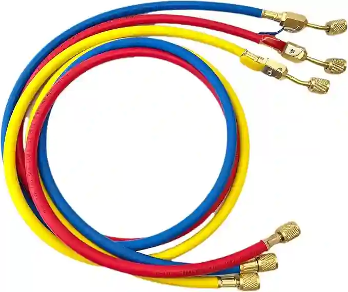 Yellow Jacket Refrigerant Charging Hose with Ball Valves for R410A R134A R22 Refrigerant Charging Hoses, 1/4” SAE Hose Set 800 PSI Red/Yellow/Blue (3pcs)
